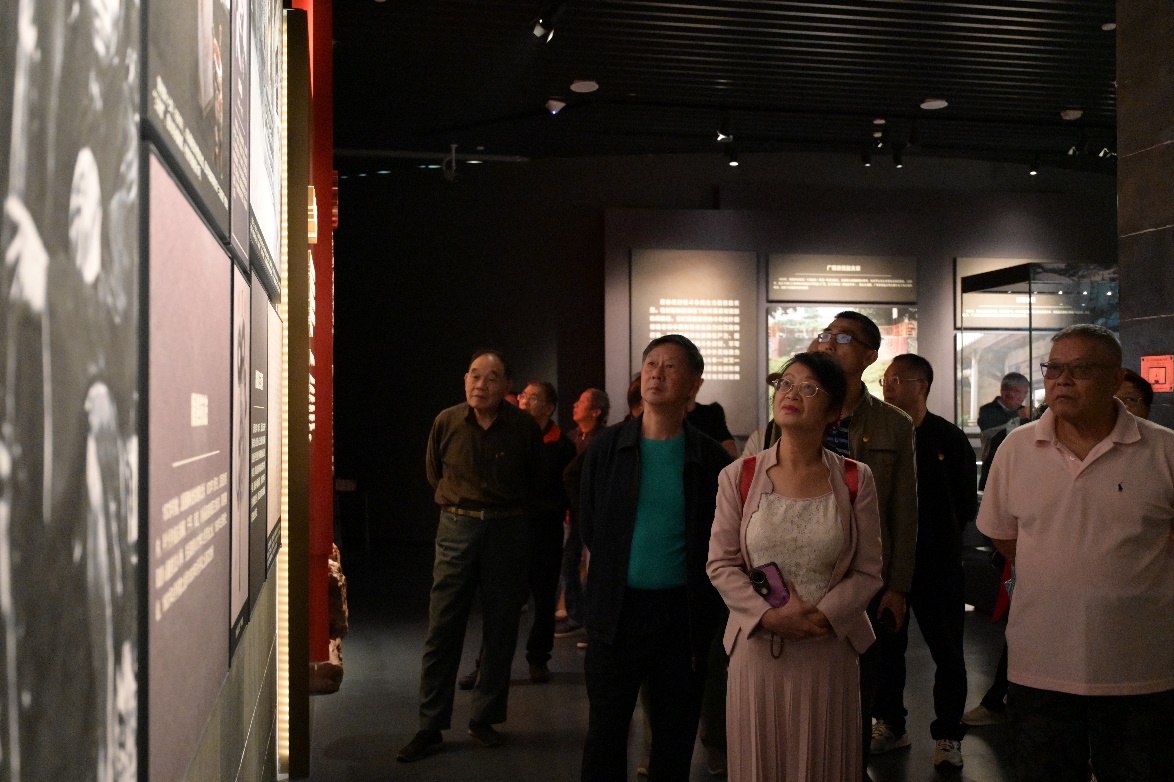 党员们集体参观了自治区博物馆民族文物苑和广西近现代革命史陈列专题展览,在民族风情中感受文化传承,在回顾革命岁月中重温红色历史,在敬老爱老中凝聚奋进力量。在民族文物苑,党员们参观了壮族、瑶族、苗族、毛南族等民族的特色民居,走过侗族的风雨桥和鼓楼,近距离观看了铜鼓巨型雕塑和镇边大炮,在领略少数民族的民俗风情中共忆在党办校办工作的场景与往事。在“烽火南疆——广西近现代革命史陈列”展厅,党员们跟随讲解员的引导逐一参观革命历史展区和抗战文物陈列,珍贵的历史照片、承载岁月的文物、还原场景的雕塑无声却有力地诉说着革命先辈在南疆大地浴血奋战、保家卫国的峥嵘岁月,老党员们时而驻足凝视,时而俯身端详,时而与中青年党员轻声交流,结合自身经历回顾艰苦卓绝却热血沸腾的岁月。